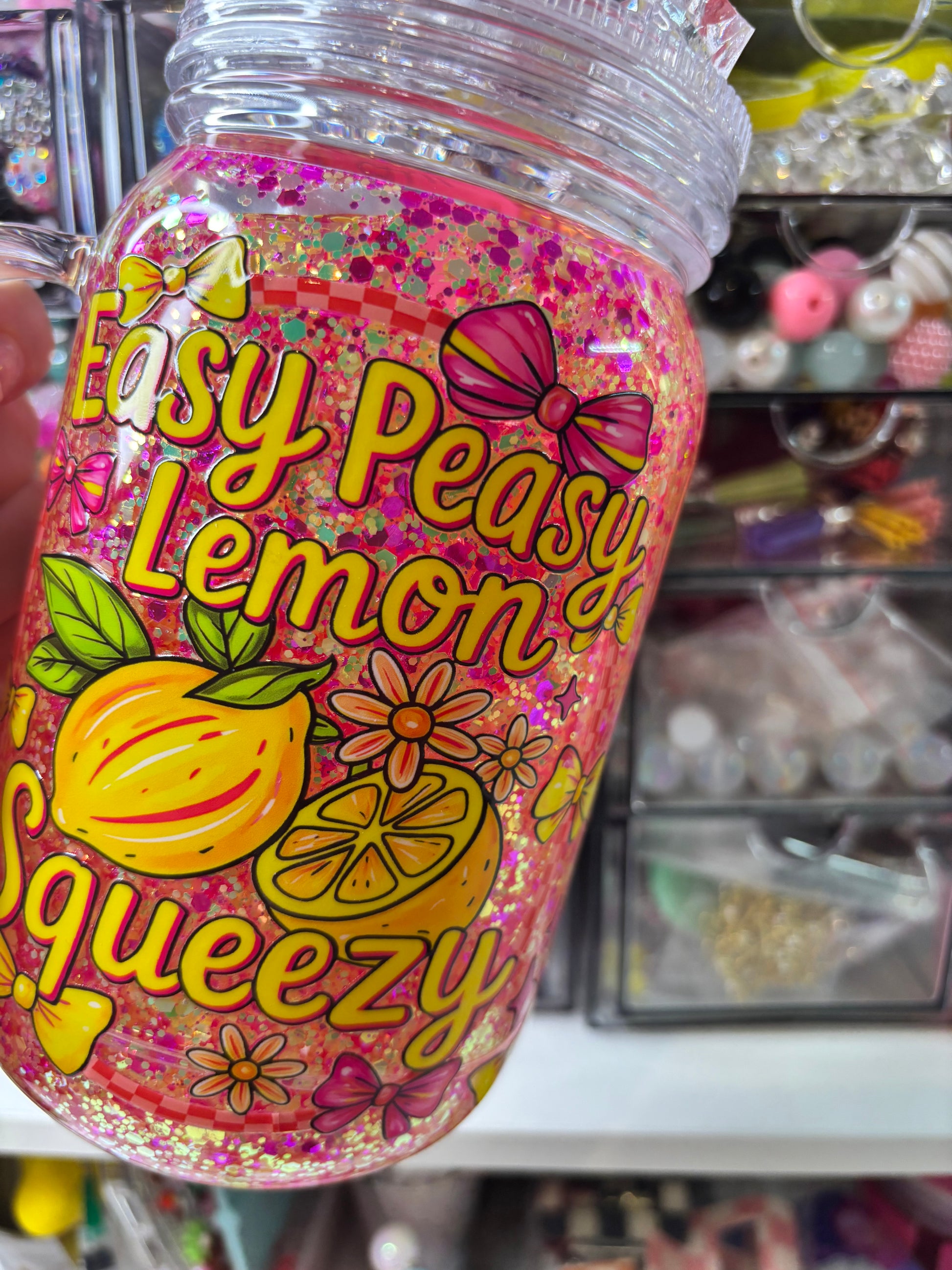 Super cute easy peasy lemon Snowglobe tumbler with novelty lid.